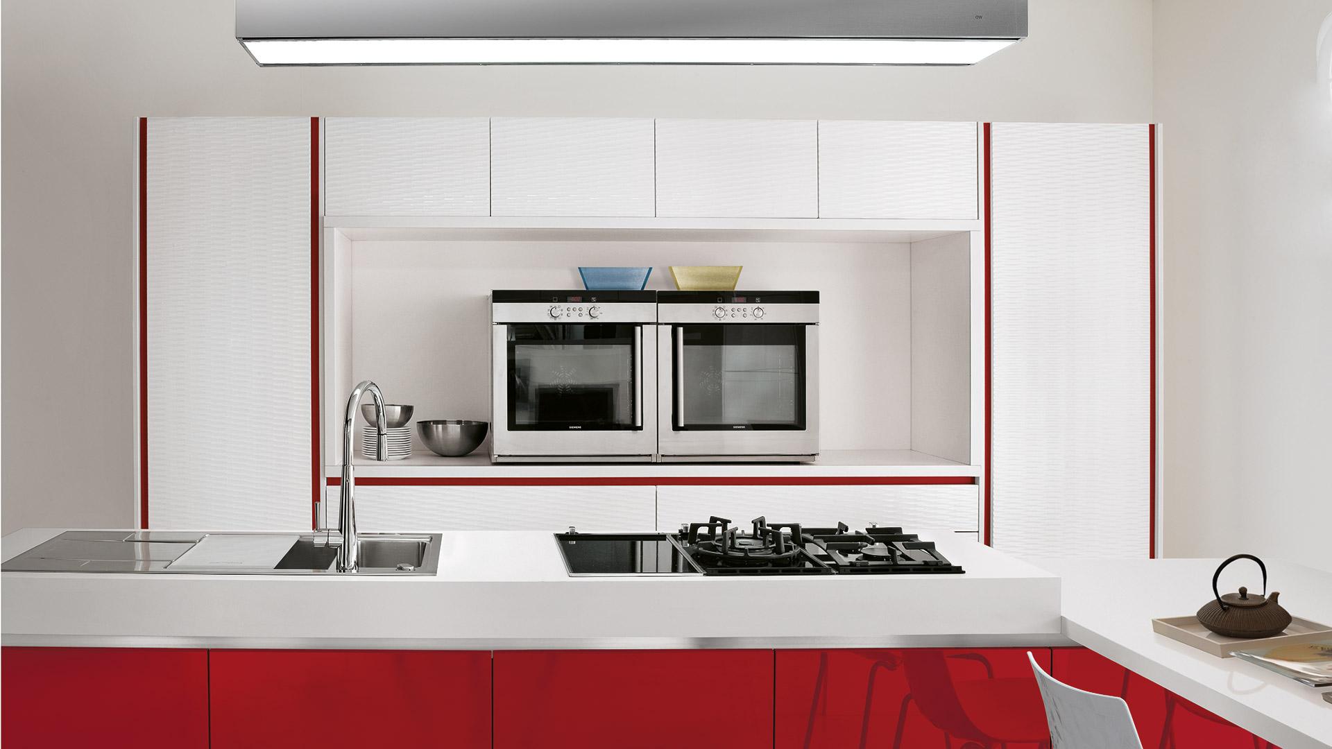 Genial. Volums ben definits, talls exactes que defineixen els espais d’estar contemporani, materials fiables i ferms, per combinar entre si per a solucions amb la màxima personalització. Aquest model ha estat estudiat en tots els seus detalls per oferir confort i practicitat d’ús, en un quadre de conjunt de preciosa elegància. La innovació d’un projecte intel·ligent que revoluciona el concepte modern de cuina: l’illa que conté zona aigüera i cocció es transforma amb un gest senzill, gràcies a un mecanisme que la fa desaparèixer en un ampli tauler, snack i zona de treball.